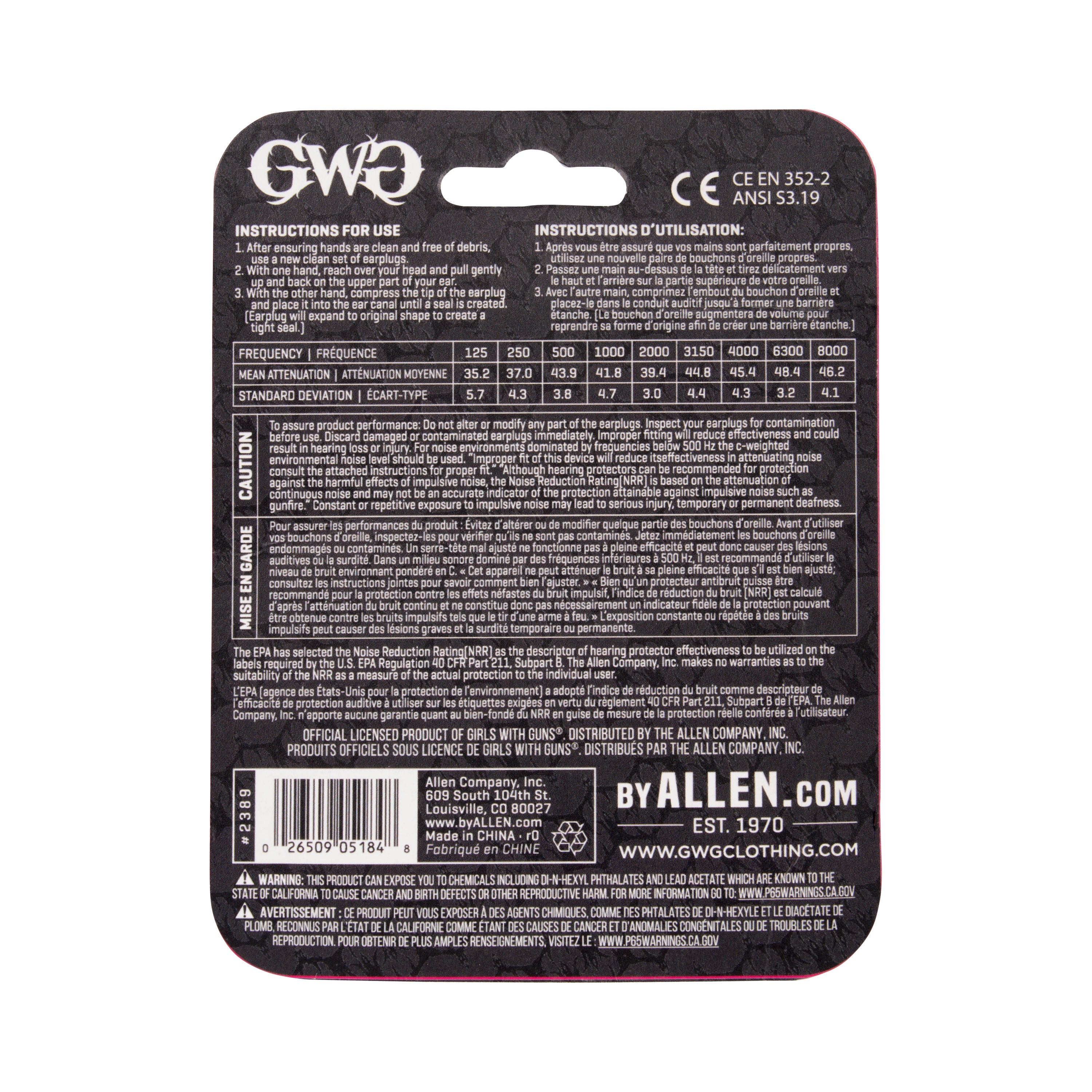 - GWG® PROTECTIVE EAR PLUGS: 6-pairs of earplugs per pack—designed by women for women, Girls With Guns® hearing protection will be sure to turn heads.