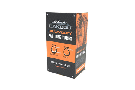 The heavy thickness (3.5mm) of the rubber at the base of the tire tapers up to a thinner, light-weight thickness (1.8mm) against the rim of the tire. This is an incredible upgrade from the standard 1.7mm thickness in a traditional fat-tire tube and takes the protection against punctures to the next level. Each tube include an easy-to-inflate Schrader Valve that allows airflow in only one direction, also allowing you to check the air pressure. Ride more and worry less with Bakcou’s new Heavy Duty Fat Tire Tubes.Â