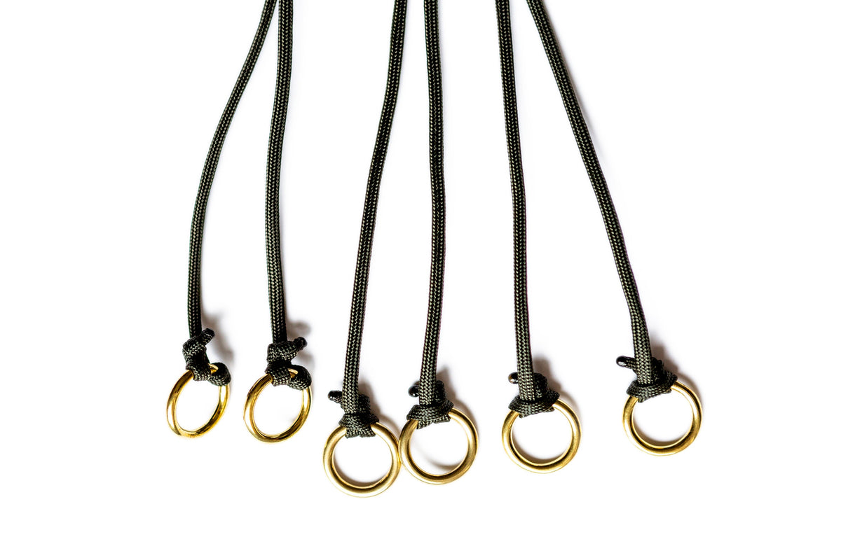 Single Game Tote made out of 550 Military Grade Parachute Cord and all Brass Hardware. It will not fade, rot, or Mildew. It will pick up all the game you can physically Tote. Unit has 6 drop lines. Hand Made, American Made and Durable.