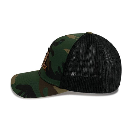 This laser engraved RakBuck logo is our February Club Hat. This leather patch is permanently pressed onto a very cool looking old school camo with a Flex Mesh back. This hat will definitely be one of your new fav's.