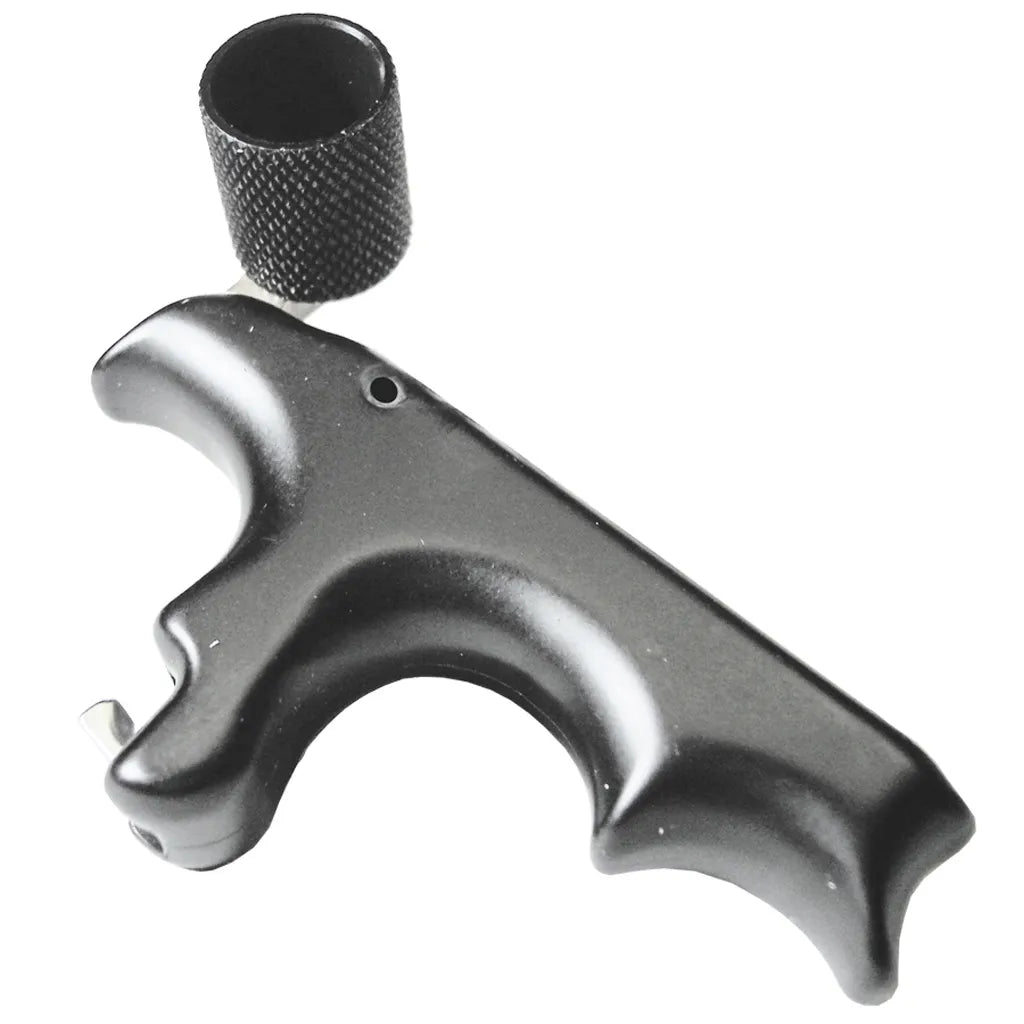 Designed with the hunter in mind and packed with features. The compact handle is smooth contoured for a perfect fit in a wide variety of hands and the micro adjustable trigger allows you to set this trigger as hot as you want without the fear of a misfire. The open jaw design allows for quick and easy hook up to D-loops allowing you to keep your eyes on your quarry and not your bow string. The thumb peg is adjustable to accommodate both right and left hand shooters. Get the accuracy of a hand held release that is designed for hunting. **NO California PROP-65 Warning Label**