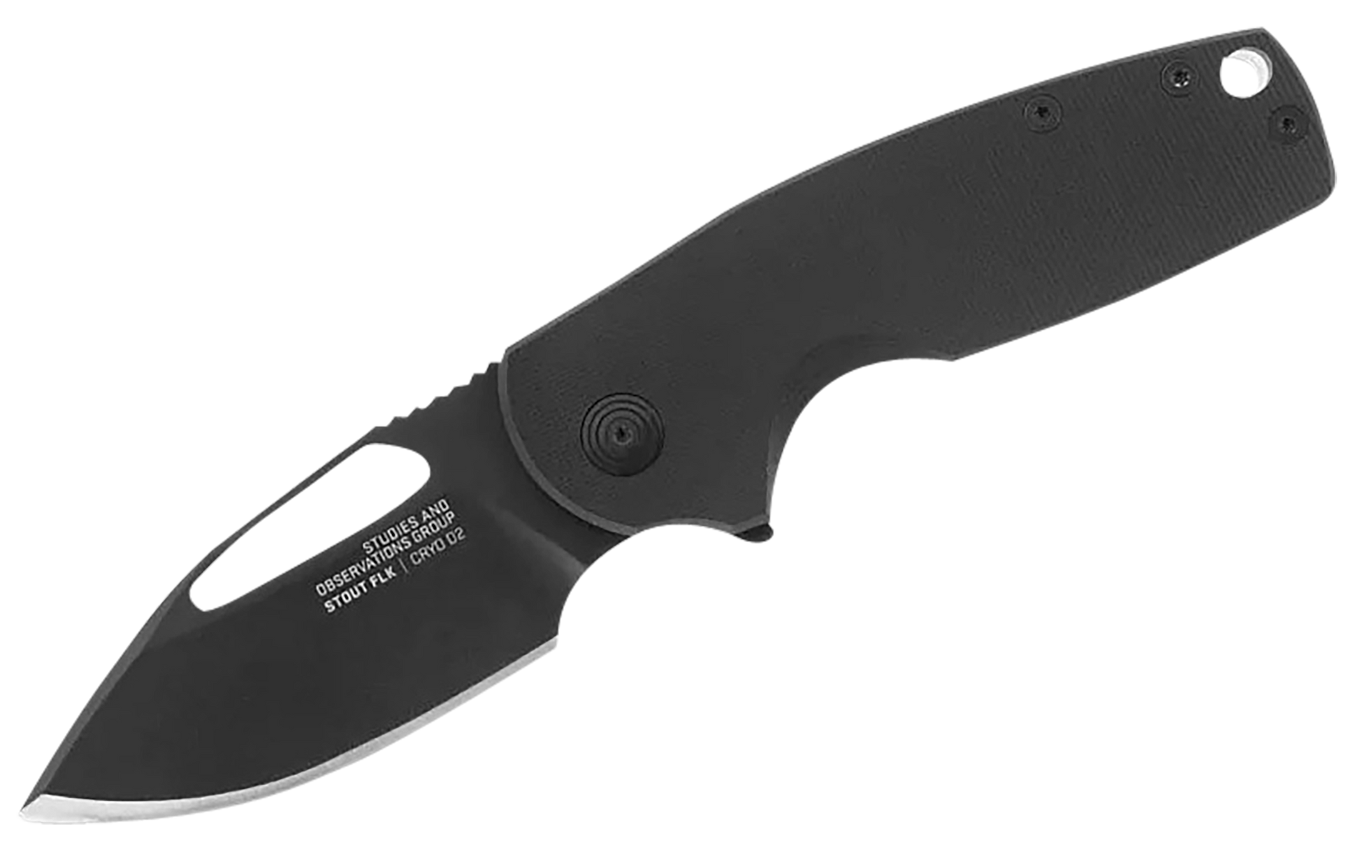 Ideal for hunting, camping, and fishing, the design delivers dependable performance for cutting rope, preparing camp meals, and general field tasks. A compact daily carry folding knife with a 2.62-inch blade made from dependable cryo d2 steel, stout flk is a framelock pocket knife that opens with a kick. Featuring a rugged g10 and stainless steel handle, stout flk is a collaborative design effort between knife designer mikkel willumsen and sog founder spencer frazer.