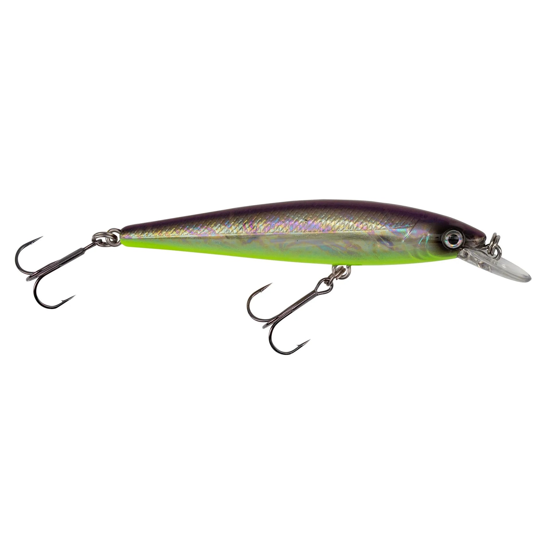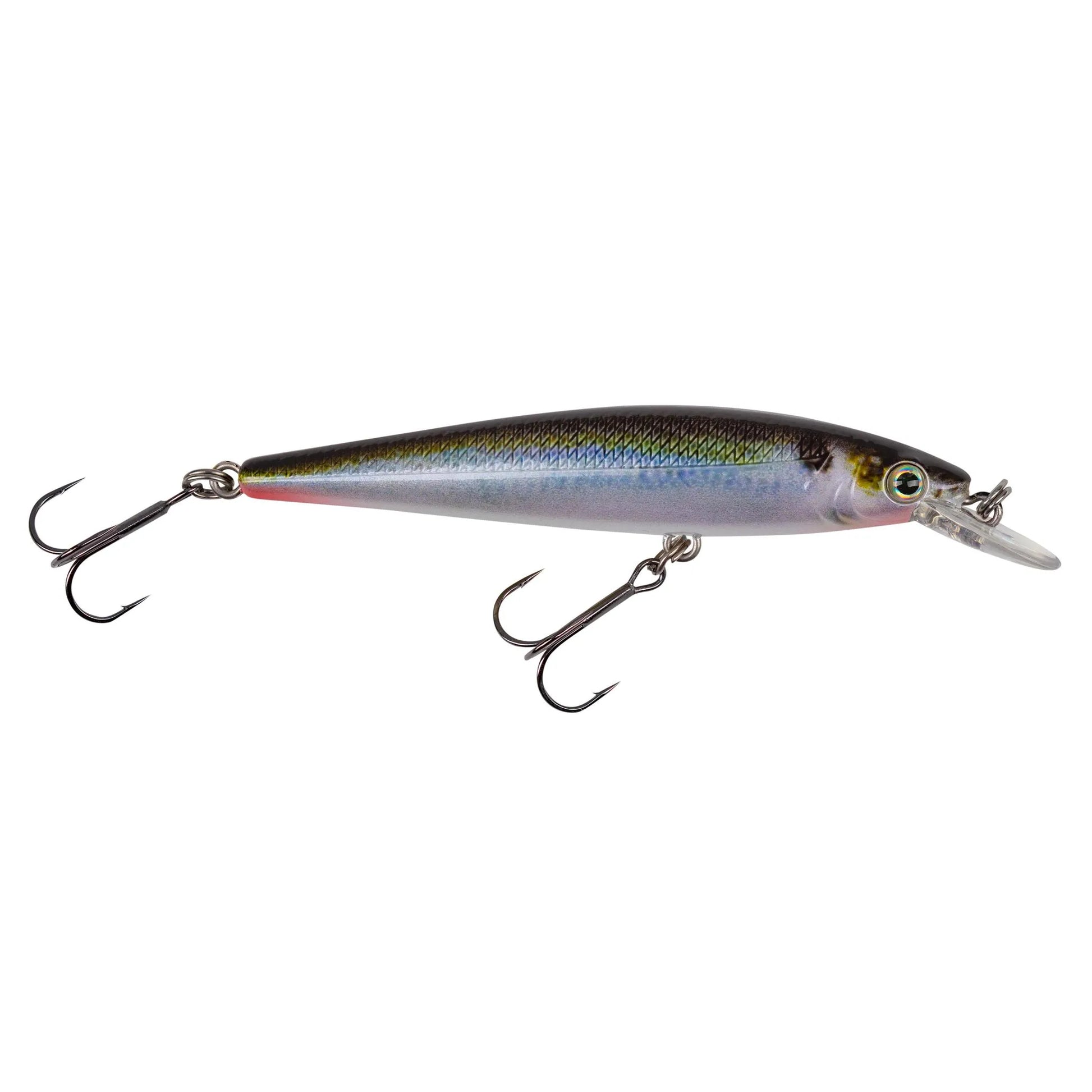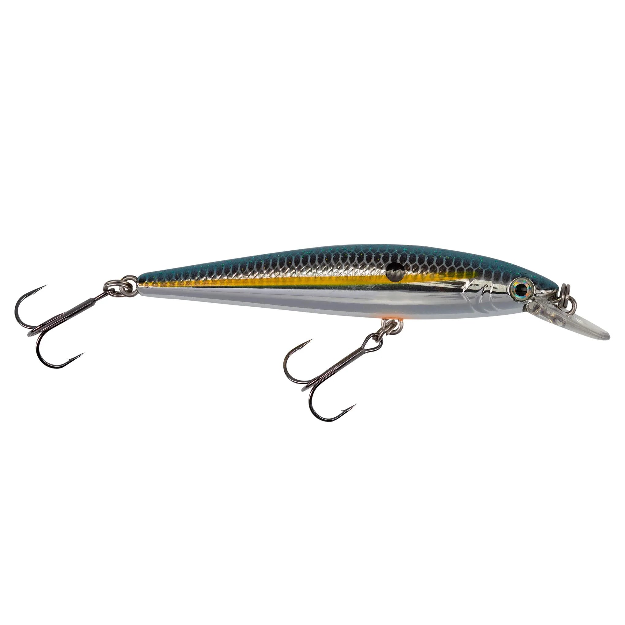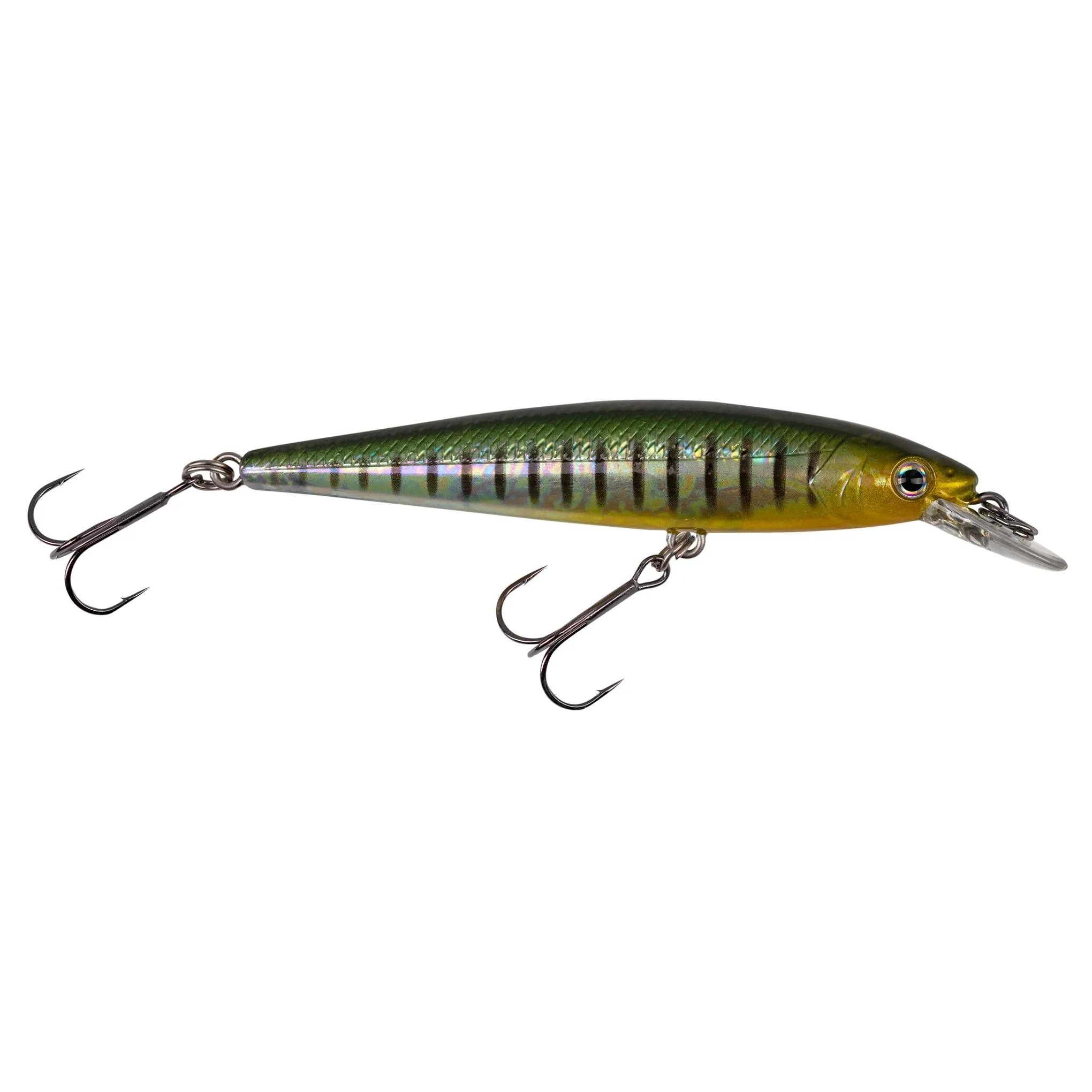 The KVD 100 Jerkbait is a shallow running, darting jerkbait that shines in conditions when larger baits might be too much for the fish. Featuring a slim, minnow-shaped body and precisely engineered diving lip, the KVD 100 comes equipped with treble hooks affixed to high quality split rings and an oval split ring to ensure proper positioning on each cast.