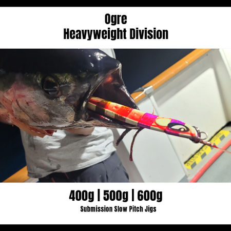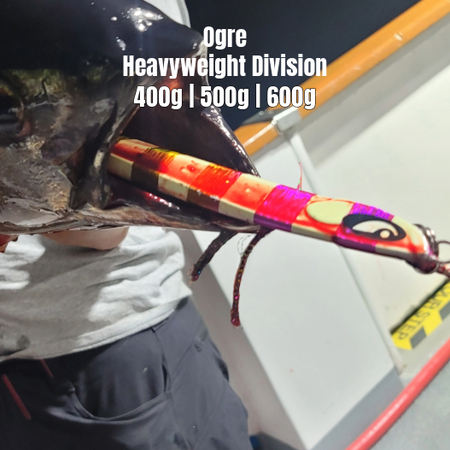 Ogre Heavyweight Division - 400g, 500g, and 600g. These jigs go deep for the deep predators: bluefin, grouper, rockfish, tilefish, and more.