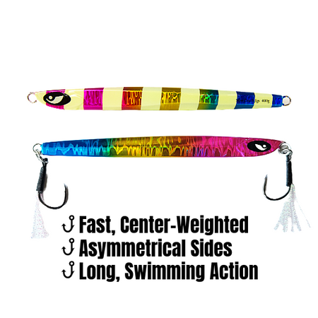 Swift and Deadly: These knife-style jigs are built for speed. Unlike traditional knives, the Ogre maintains a slow pitch descent, slicing through the depths like a blade. But here’s the twist—it’s center-balanced like a true slow pitch jig. Fish it horizontally on the retrieve and watch it work its magic.