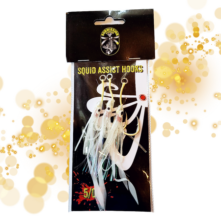 The Submission Squid Hook is the deadly accomplice to the Submission Jig, the perfect companion for the Javelin, the Ogre, and the Samurai. Coming in 5/0 and 10/0 sizes, these high-quality saltwater-grade assist hooks are disguised by a realistic, GLOW IN THE DARK, squid huchi. Try the squid assist hooks when you need a different presentation for those finicky fish. Hooks come in packages of 3.