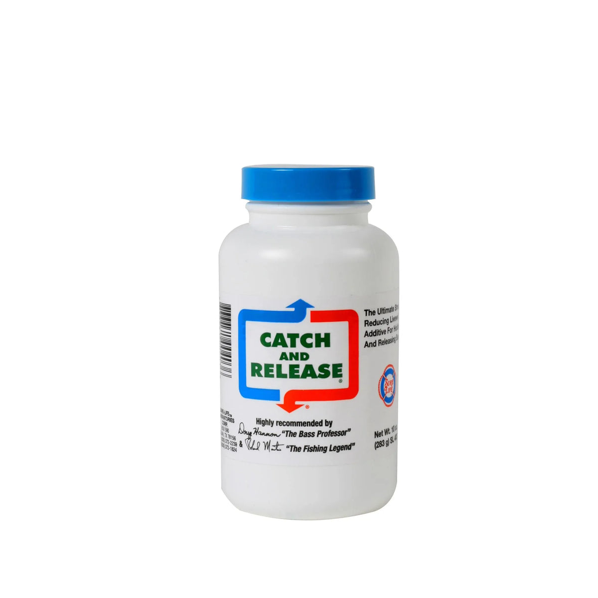 Sure-Life Catch and Release is the ultimate stress-reducing livewell additive. One teaspoon of Sure-Life Catch and Release will treat 10 gallons of water, keeping bass calm with an all-natural sedative. It also stimulates and protects slime coating, reduces weight loss by preventing regurgitation, prevents shock and restores electrolyte balance. Catch & Release instantly removes harmful chlorine and other toxic chemicals, boosts oxygen transfer, and protects against post-release infection.