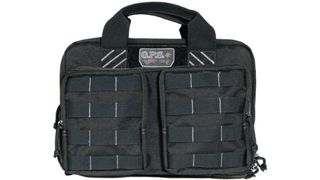 The tactical quad +2 pistol case stores up to 6 handguns utilizing the two removable padded pouches. It has a double quilted inside storage area, 8 backside magazine storage pouches, twin front ammo pockets with triple-stitched molle webbing with a ykk locking zipper on the main compartment for legal transport. It has a hook and loop gps tactical logo patch, removable to personalize with a name or club placard. Visual id storage areas have velour-lining to protect glasses and ear pieces. The gps tactical line of gear is made of 1000 denier heavy-duty material with dupont teflon coating for grime resistance and is sewn with mildew- and rot-resistant nylon-based thread using box and bar tack reinforced stitching in all critical areas.