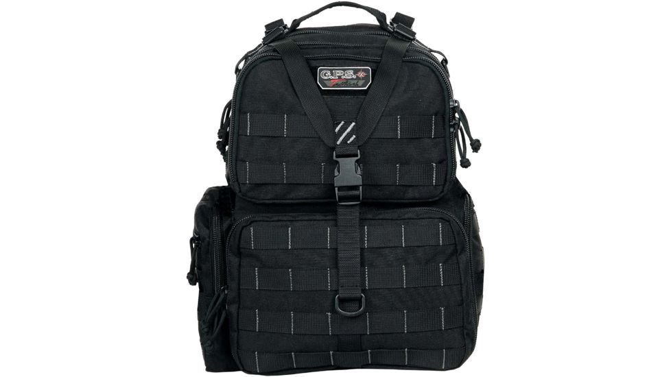 The tactical range backpack is made of 1000 denier heavy-duty material with dupont teflon coating, lockable ykk brand oversized self-tracking zippers, triple-stitched molle webbing, external bungee for targets, pull-out rain cover, 4 outside zippered pockets for ammo and other accessories as well as a padded waist strap for load stability and an internal honey comb frame for rigidity of the pack. Visual id storage areas provide velour-lining to protect glasses and ear pieces and aid in quick access of other items such as keys, cell phone or tools. The tactical range backpack has 3 removable handgun storage cases with magazine storage and a hook and loop gps tactical logo patch, removable to personalize with a name or club placard.