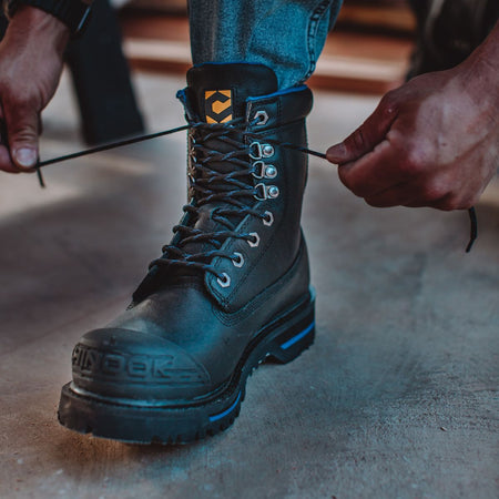 Introducing the Tarantula 8" Steel Toe Men’s Waterproof Work Boot in Black an upgrade to our iconic Tarantula line that stands out with a sleek, modern design built for the harshest work conditions. Crafted for those who need a balance of durability, safety, and comfort, this boot features a bold new appearance while maintaining the toughness and dependability you can count on. Engineered for the most rugged job sites, it delivers superior waterproof protection, ensuring your feet stay dry no matter what the day throws at you. Whether you're navigating oil-slick floors or wet terrain, the Tarantula 8" keeps you safe, dry, and comfortable throughout the day, making it the perfect companion for those who demand reliability.