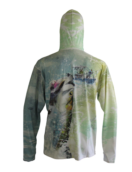 Daniel Lopez's Tarpon is on the fly in this incredible representation of the fight. Our fly fishing apparel works well as hiking clothes on the trail or fishing shirts on the flats. Great sun protection, moisture wicking apparel.
