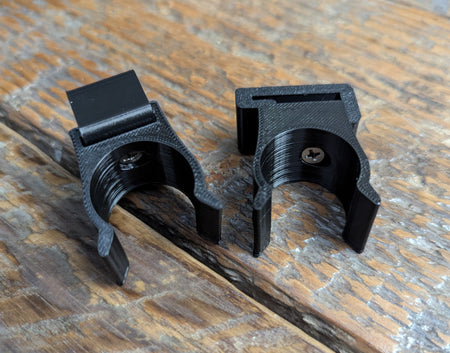 Tethrd One molle caddy. The caddy stays on your saddle or pack's 1" molle loops and stick can be clipped in and removed easily. Caddy fits stick with or without stealth strip. Two pieces held together with a stainless steel screw. One stick/saddle/pack not included.
