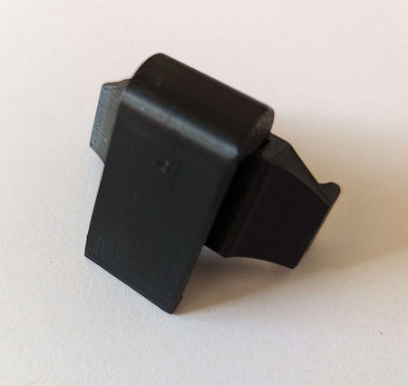Climbing stick caddy designed for Tethrd Skeletor sticks. Buttons on the inside match up with the stick's holes to prevent caddy from sliding up and down the stick. The bracket stays on the stick and the back clip easily lifts on/off a molle loop or a 1" belt for when climbing. Two pieces held together with a stainless steel screw. Saddle and stick(s) not included.