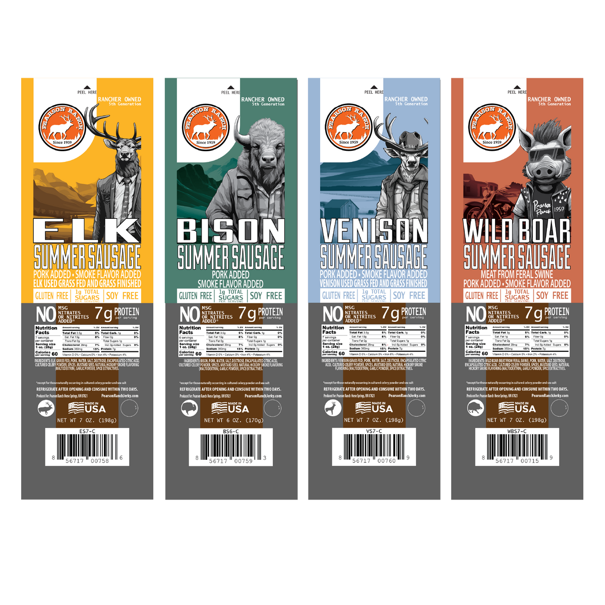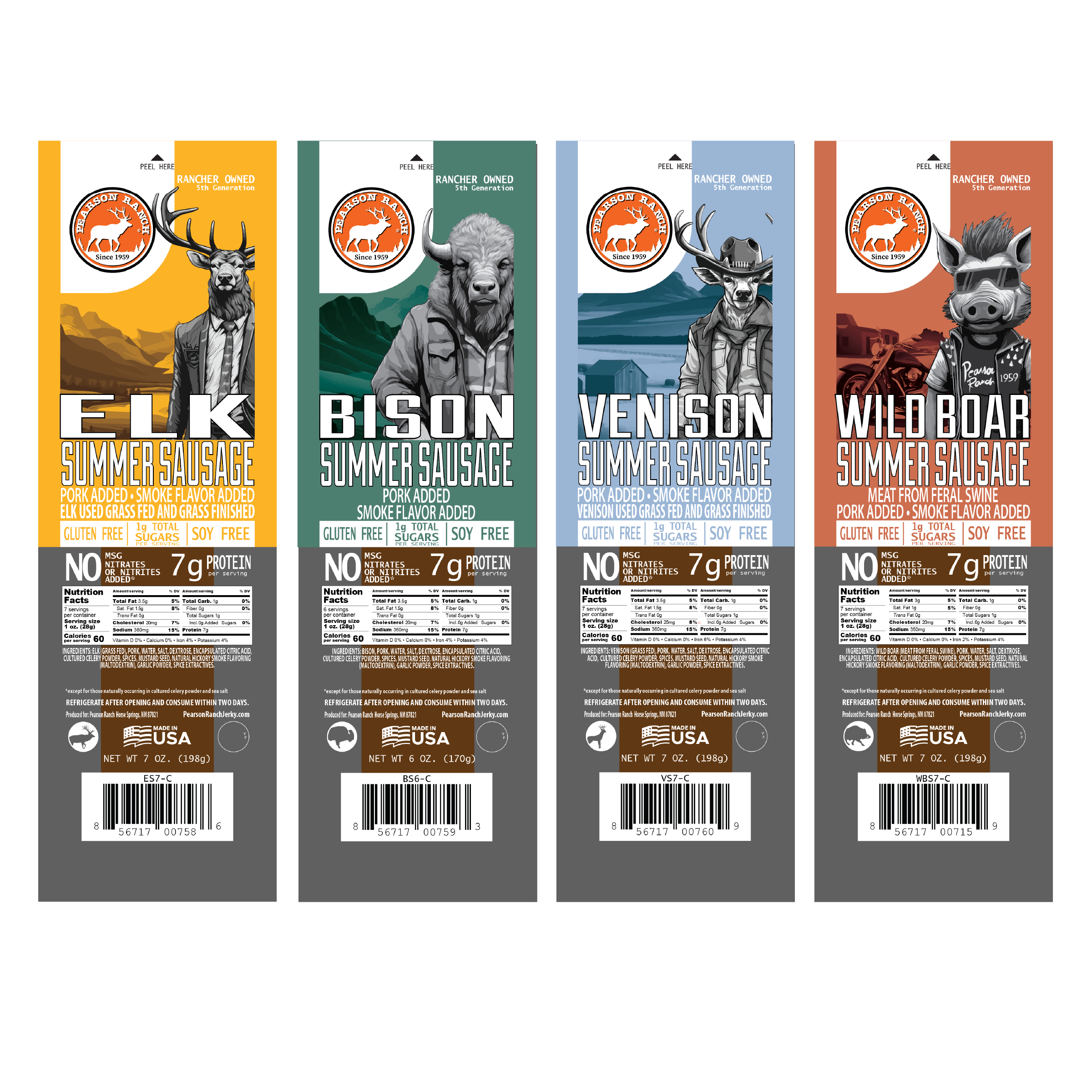 One of our most popular variety bundles, complete with over 10% in savings, The Whole Chuck Wagon is the ultimate feast for trying Pearson Ranch Jerky’s exotic meats! It’ll stand out as a gift or take it to the next family reunion to be everyone’s favorite family member! Check out the 76 pieces: