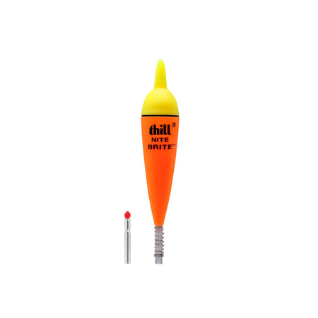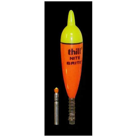 Unlike many lighted, nighttime floats with tangle-prone appendages, the Thill Nite Brite is a true center-slider float that glows brighter, lasts longer and makes fishing in the dark easy and productive. As a true slip-float, however, the Nite Brite also functions as a great float for daytime use, too. Simply unscrew the cap, push on the battery top and replace the cap. The E.L. battery/light gives off a super-bright glow that's easy to see even in waves.