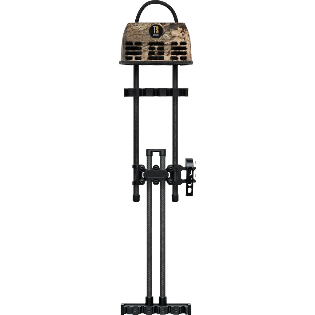 The world's most adjustable 1-piece quiver for the perfect customized fit. The triple axis adjustment (in/out, up/down, and forward/back) allows a full range of adjustability. The telescoping rod adjusts from 13 1/4" to 22" allowing the user to adjust the overall length of their quiver and get the proper fit for their arrows and better balance.