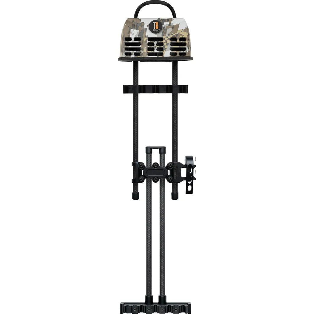 The world's most adjustable 1-piece quiver for the perfect customized fit. The triple axis adjustment (in/out, up/down, and forward/back) allows a full range of adjustability. The telescoping rod adjusts from 13 1/4" to 22" allowing the user to adjust the overall length of their quiver and get the proper fit for their arrows and better balance.