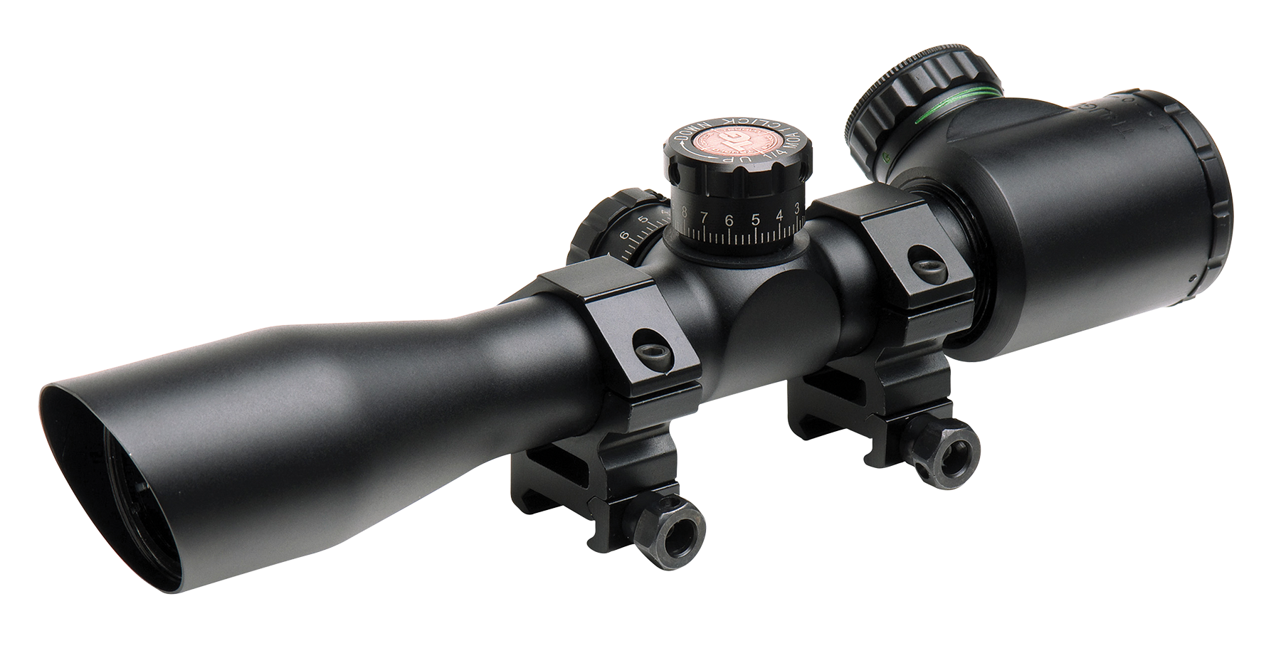 Truglo's tru-brite xtreme compact tactical scope comes with 1" rings for mounting to your accessory rail.Its fully coated lenses provide maximum brightness, clarity and contrast.The fingertip windage and elevation adjustment are under screw down caps and the durable leaf spring is for windage and elevation adjustments.This one piece tube made of aircraft quality aluminum with a durable, scratch resistant, non reflective matte finish.