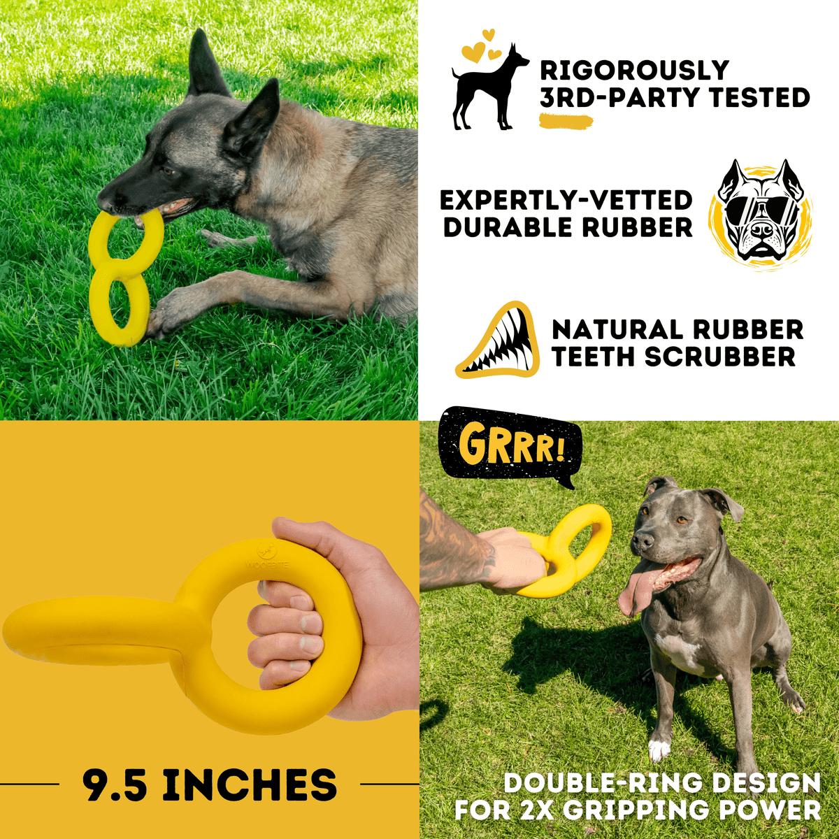 • Loved by Big Dogs - YELLOW (HIGHLY VISIBLE COLOR FOR DOGS) - The unique, engaging natural rubber & bright yellow color make WOOFBITE toys irresistible to dogs, ensuring they are obsessed from the moment you unbox it.
