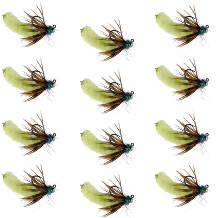 Tungsten Bead Chartreuse Mop Fly Tactical Jig Czech Euro Nymph Barbless Fly - 1 Dozen Flies Size 14
