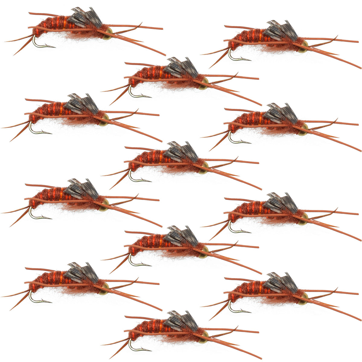 Set of 12 hand tied Tungsten Bead Kaufmann's Stone Fly Nymph Flies - Hook Size 8