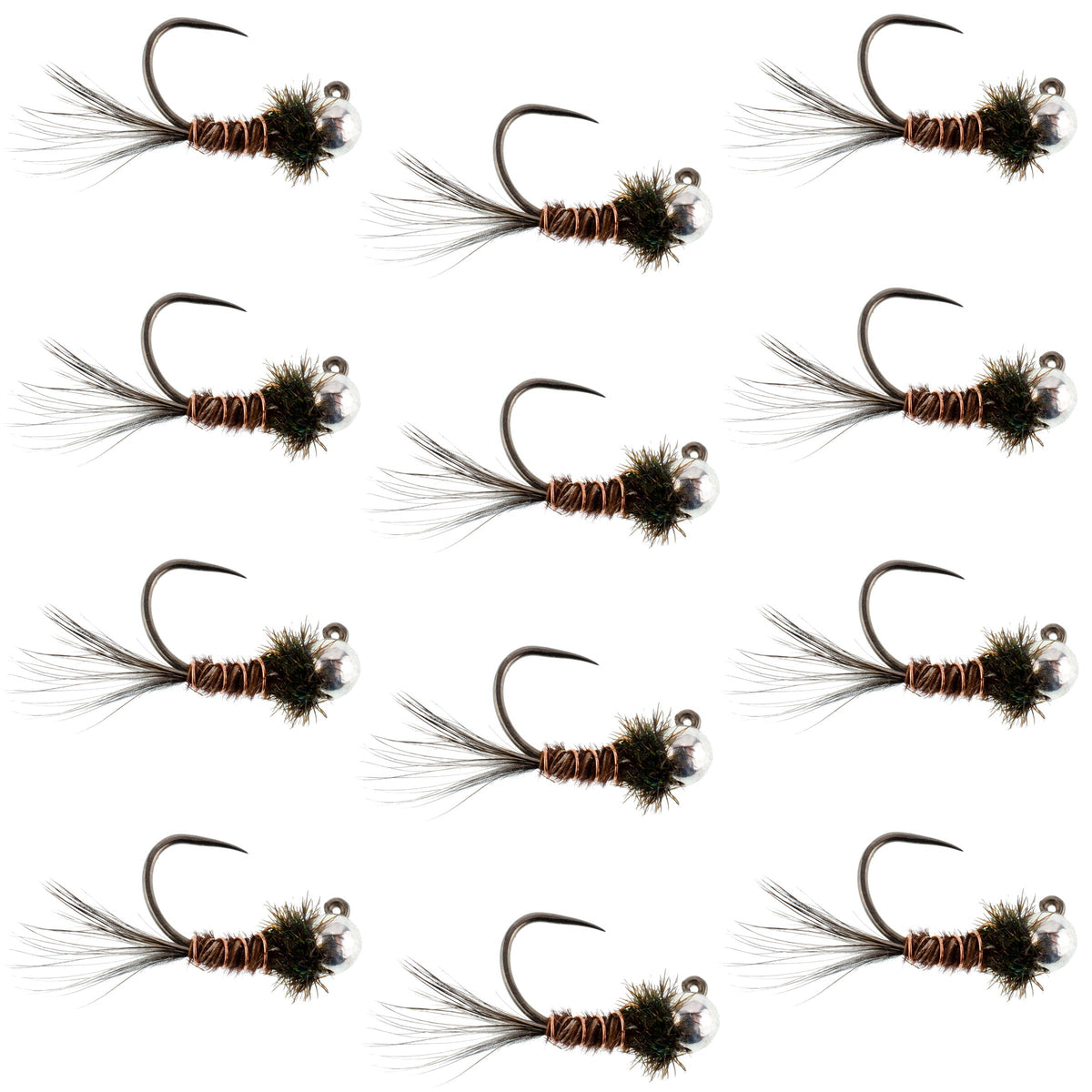 Tungsten Bead Pheasant Tail Tactical Jig Czech Nymph Euro Nymphing Fly - 1 Dozen Flies Size 16