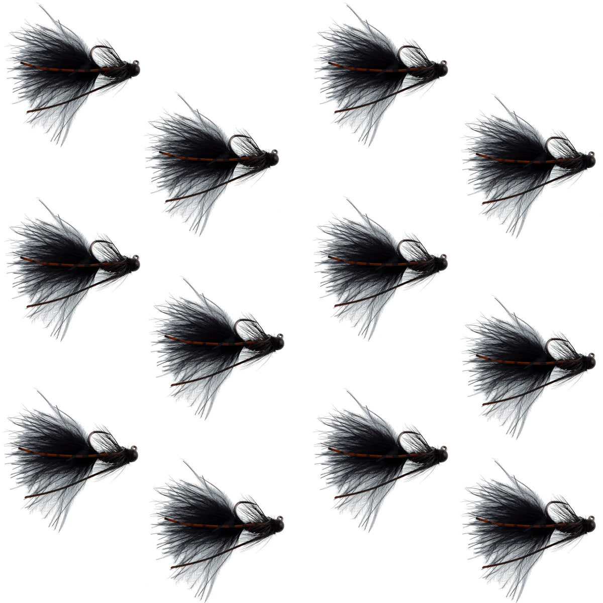 Tungsten Bead Tactical Black Mini Bugger Czech Nymph Euro Nymphing Fly - 1 Dozen Flies Size 12