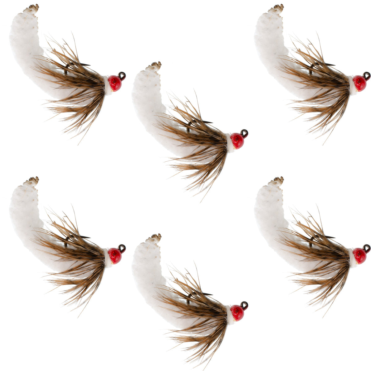 Tungsten Bead White Mop Fly Tactical Jig Czech Euro Nymph Barbless Fly - 6 Flies Size 14