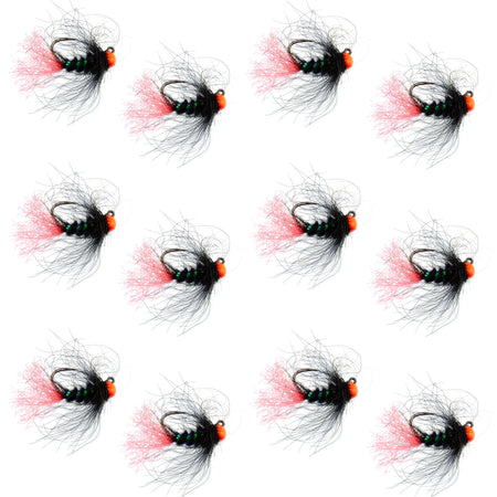 Hand Tied Tungsten Hot Bead Head Blow Torch Tactical Euro Polish Czech Nymph Flies - Set of 12 Flies Hook Size 16.