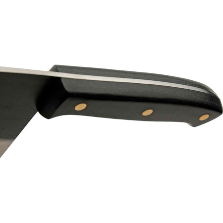 The Watchfire Serbian 6.75-inch Cleaver from Szco is a powerful, full tang fixed blade designed for ultimate durability and performance. Forged from premium 7Cr17MoV stainless steel with a sleek black finish, this cleaver is built to handle a variety of tough cutting tasks, whether you're chopping through bone or slicing meat with precision. The black Pakkawood handle offers both an elegant look and a comfortable, secure grip. Weighing just 1.66 ounces and measuring 11.75 inches overall, this cleaver strikes the perfect balance of strength, portability, and functionality. It also includes a black canvas belt loop sheath for safe and convenient storage.