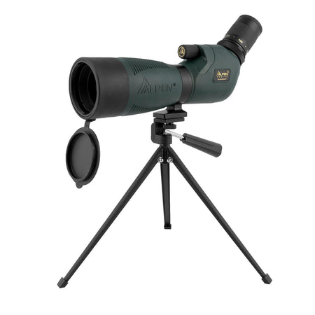 Other features include a 45-degree angled eyepiece with a 360-degree adjustable body collar; an extendable sunshade; a portable 12-inch swivel-head tabletop tripod; and a durable, padded field carrying case. The scope carries Alpen's lifetime warranty against defects in materials and workmanship.