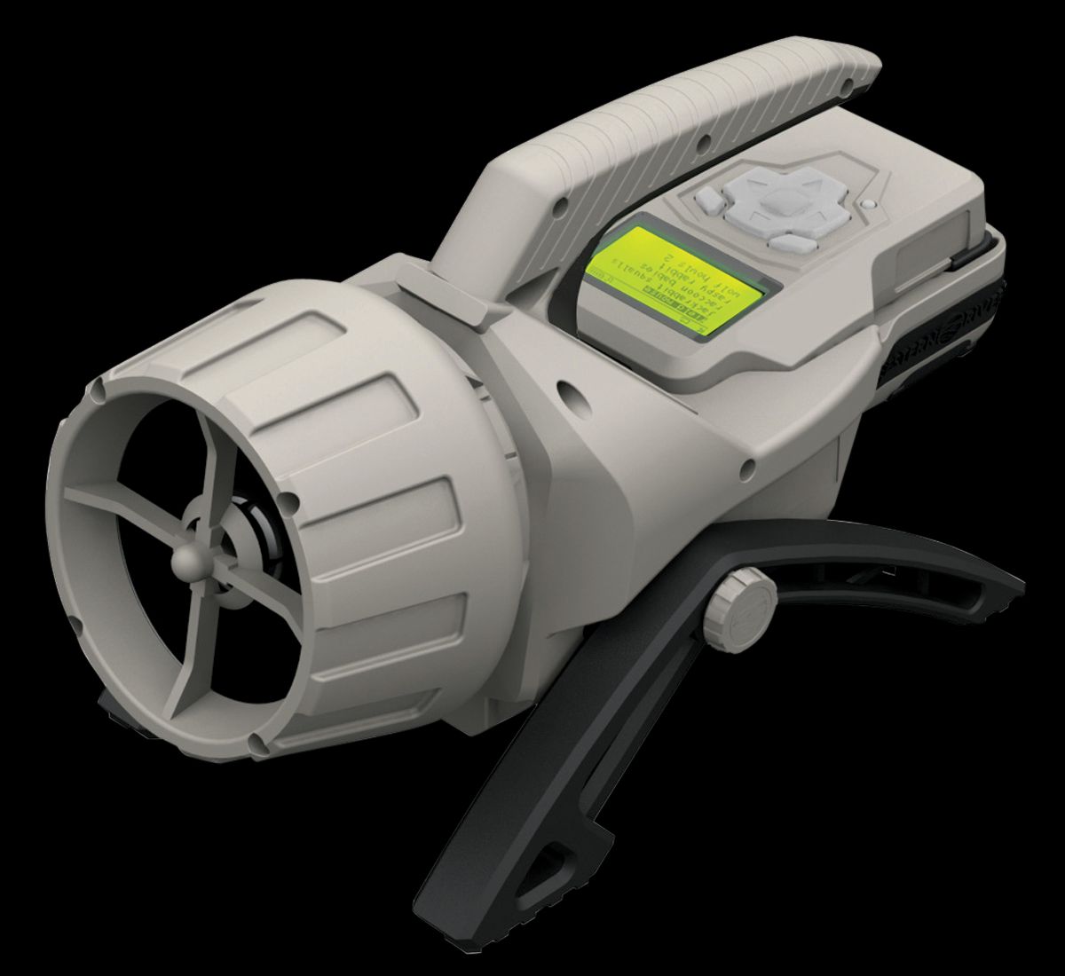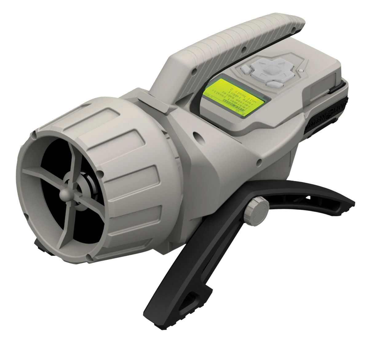 The mantis pro 100 is a compact handheld remote controlled caller equipped with 100 pre-loaded sounds.The realistic animal sounds include, but are not limited to elk, wolf, deer, turkey, bobcat, coyote, moose, rabbit, duck and fox.The call features 32 mb internal memory, 4" hi-output loud speaker with volume up to 110db and an external power jack and sync connector with mounting bracket for motorized decoy.It is made of durable abs plastic with an integrated remote dock, and swivel legs.Included is a long range 300 yd removable remote control with 2" screen that is led backlit and has 4-6 lines of icons.