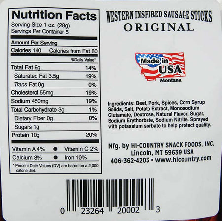 Hi-Country's signature sausage sticks are made from premium USDA inspected meats and quality spices. Packed in resealable 5oz and 10 oz. bags.