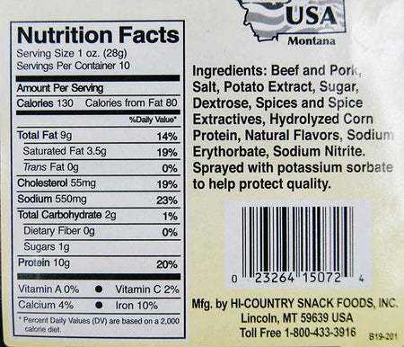Hi-Country's signature sausage sticks are made from premium USDA inspected meats and quality spices. Packed in resealable 5oz and 10 oz. bags.
