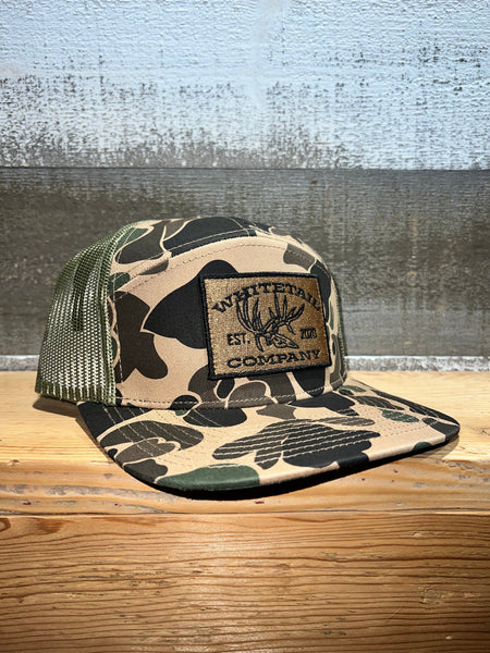 - Enhance your outdoorsy look with Whitetail Co.'s 7 Panel Old School Duck Camo hat. This stylish snap back features a mesh back and is adorned with an embroidered patch of the popular duck camo pattern.
