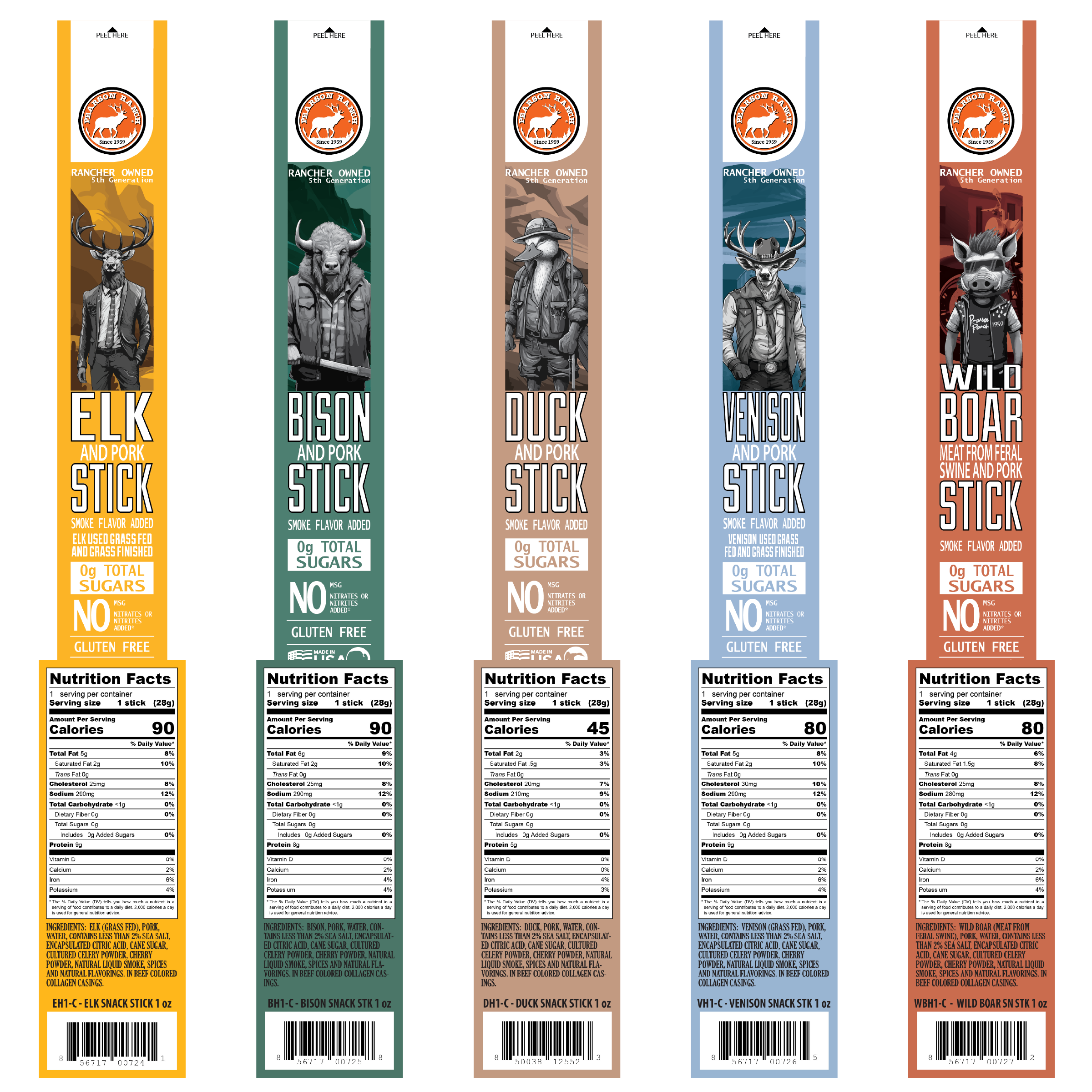 Just like the person you want to recognize our Wild Game Gift Boxes are anything but ordinary and provide a wonderful blend of flavors and form factors. Elk, Bison, Venison, Duck, and Wild Boar - which one will be their favorite? Will it be the snack sticks or the jerky? Or perhaps the summer sausage (in the medium and large size boxes)?