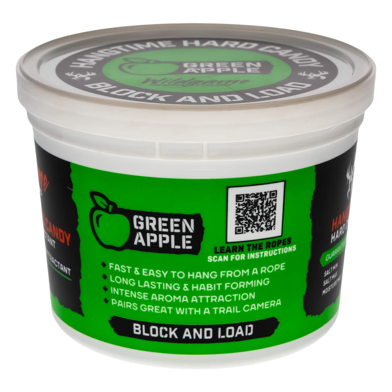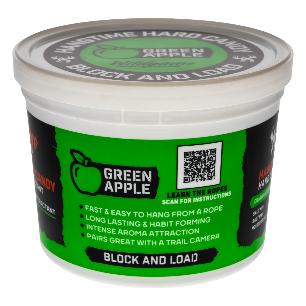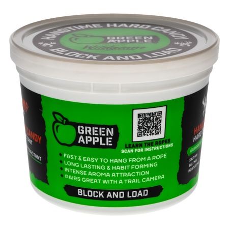 The Hangtime Hard Candy Block Apple is a 3.5lb deer attractant designed to be both effective and convenient. This long-lasting attractant is easy to hang from a tree with its included 12-inch rope. The hard candy formula ensures durability and continuous attraction. Perfect for hunters looking to draw deer to a specific location, this block combines practicality with proven efficacy.