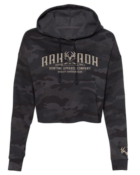 This Black Camo women's crop hooded pullover is slim fit, extremely soft, with a raw edge waist. We use premium ring-spun cotton and 40 Singles 100% Cotton Face yarn to achieve a smooth and stable fabric surface for printing. Completed with our quality construction, a raw edge waist, flat drawcord, sewn eyelets, and 1x1 ribbing at cuffs.