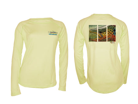 Women's Colored Brown Trout Pale Yellow L/S Fishing Shirt Fly Fishing Apparel