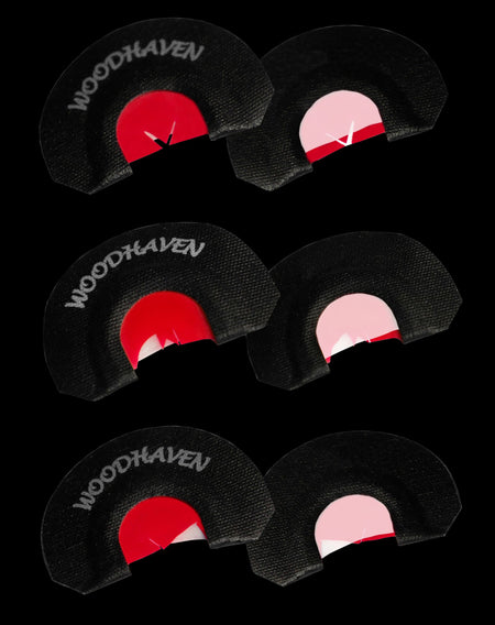 The red ninja 3 pack is a combination of woodhaven diaphragm turkey calls built with our ninja red latex.This pack is built to give the turkey hunter three totally unique turkey sounds.The red ninja pack includes the red power v, red half venom and the red reverse hammer.These three diaphragm calls offer a very light feel with tons of backbone.Whether its those soft early morning tree calls to the hard cutting and yelping of wild turkey hens, these calls do it all.
