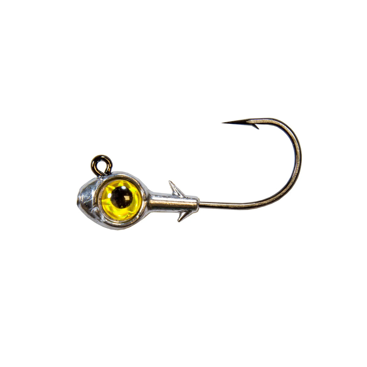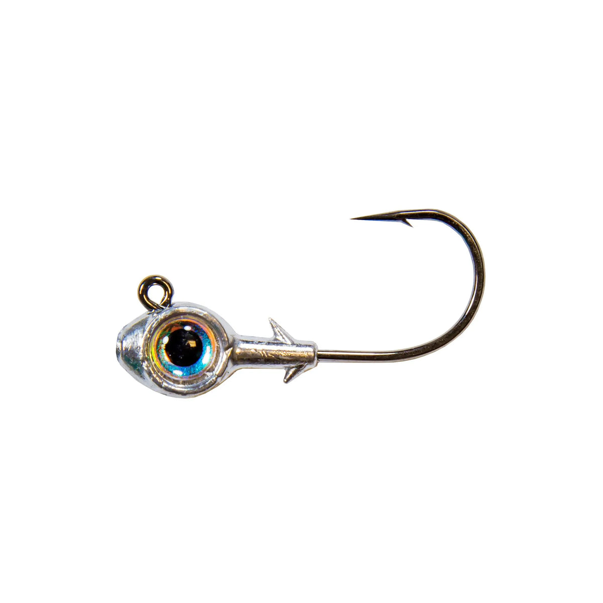See eye, slam eye. If you're an inshore predator, that's how your brain works. So you would be helpless to resist a Z-Man® Trout Eye™ Jighead. No other jighead sports a bigger, more natural-looking 3D eye than the Trout Eye...and no other jighead is so precisely balanced to maintain a natural profile in shallow water. Developed by seatrout guru Ralph Phillips, the Z-Man Trout Eye is meticulously hand-poured and molded to a heavy-duty Mustad® UltraPoint® hook. Super-sharp double barbs on the collar hold your plastic secure. For trout, reds, snook, tarpon, and more. Made in USA.